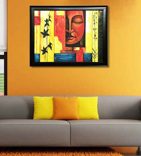 Orange Wood Buddha Meditating Figurine Handmade Oil Painting On Canvas By Chaque Decor
