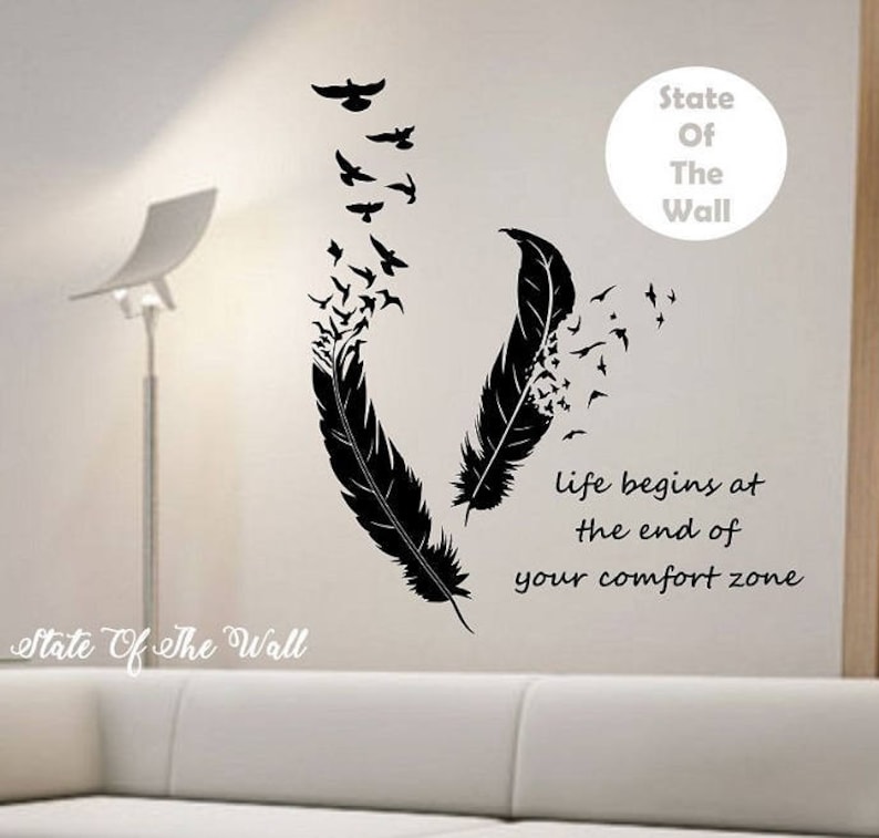 Feathers Turning Into Birds Vinyl Wall Decal Sticker Art Decor Bedroom Design Mural Animals Home Decor Living Room Life Begins Quote