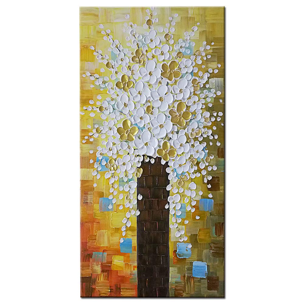 Okbonn Abstract Hand Painted Oil Paintings White Flowers Canvas Wall Art Plum Trees Texture Modern Home Decor Artwork For Living Room