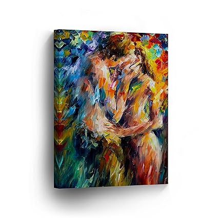 Kissing Couple Lovers Colorful Naked Nude Oil Painting Canvas Print Decorative Art Wall Home Decor Artwork Gallery Wrapped Stretched Ready To