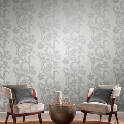Xanadu Oriental Pearl Metallic Designer Wallpaper